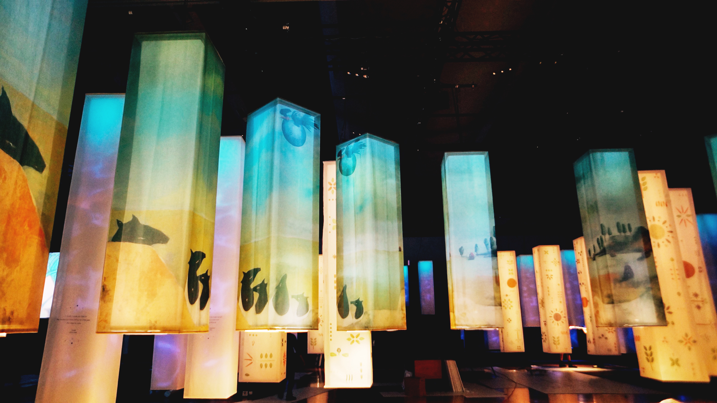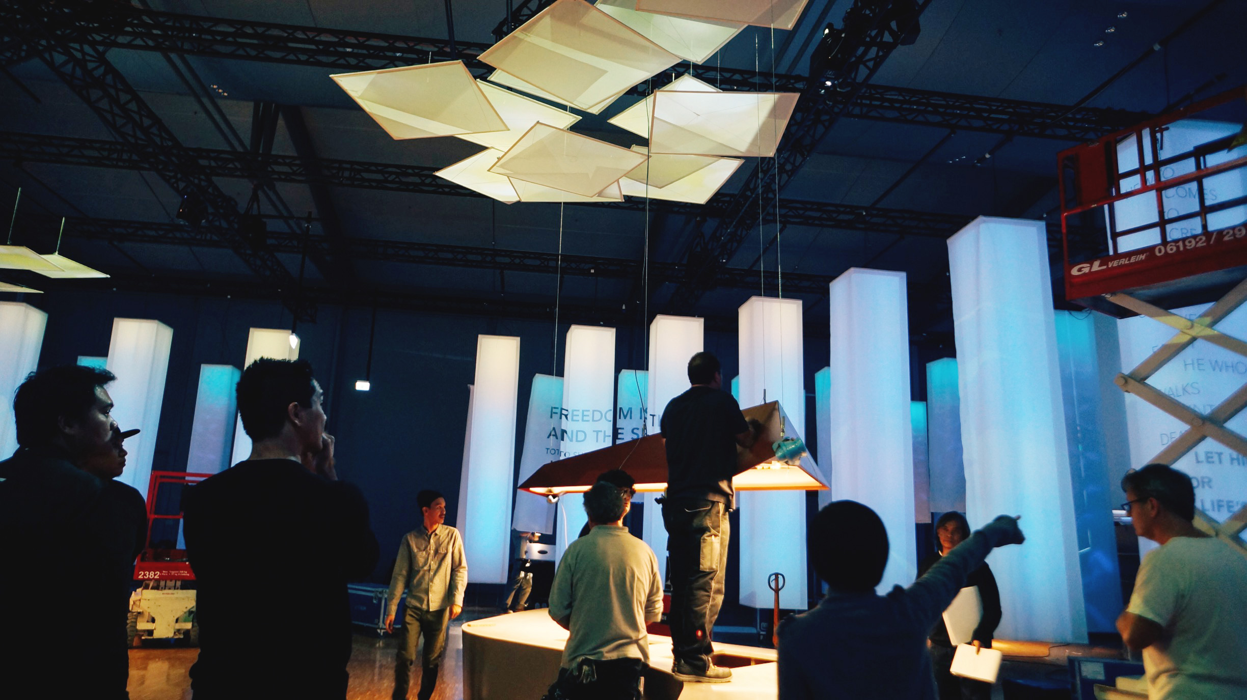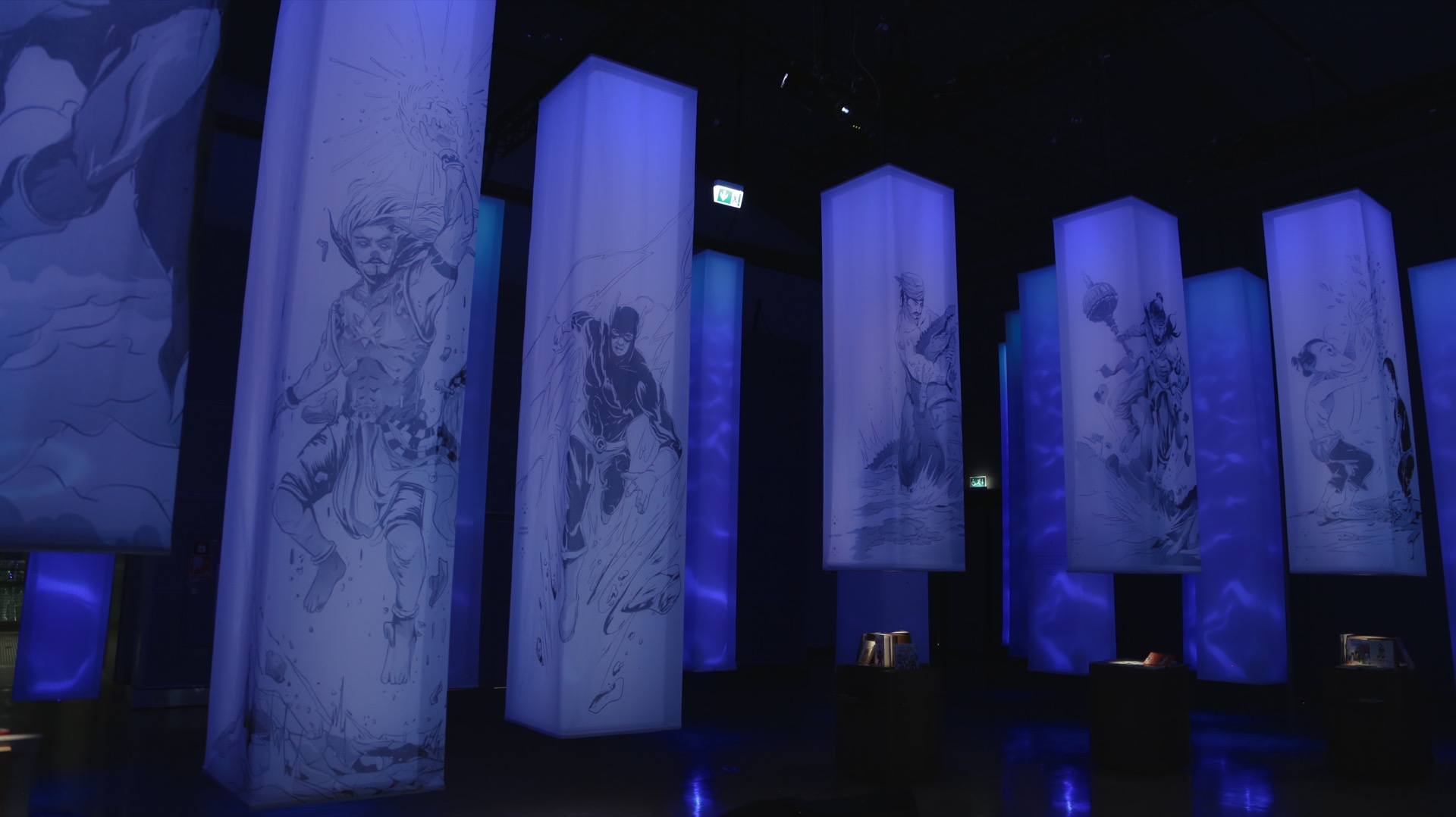We integrate projection mapping with lighting design to create a unifying atmosphere at Indonesia’s pavilion. The projection mapping’s role was to create different ambients and moods at the entirety of the scenes happening at the book fair, from imaginative, relaxing, to lively. Following through on the concept of “17,000 Islands of Imagination”, the atmosphere we create fosters the audience’s immersive experience as they learn of Indonesia’s rich cultural and literary landscape.