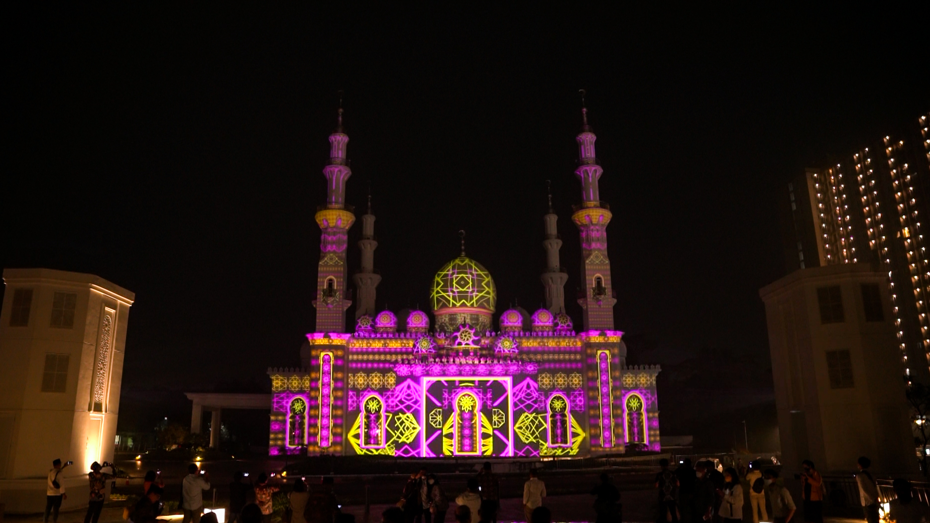 Aligned with the stories and the humble design of the mosque, we create a visual that tells the story with Islamic patterns and decorations. The mapping has become a favorite public attraction, hopefully fulfilling its purpose, to be an inspiration.